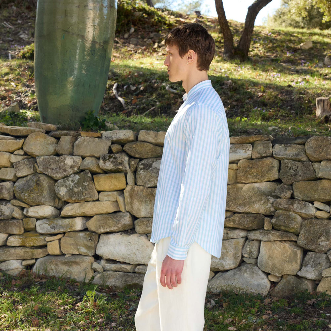 Porter une chemise à rayures pour homme offre une multitude de possibilités stylistiques. Les rayures fines, proches du motif uni, sont parfaites pour des occasions formelles et professionnelles. Elles se marient bien avec un pantalon slim et un col classique ou français pour un look élégant. À l’inverse, les rayures larges, telles que les rayures bâtons, sont idéales pour un style décontracté, parfait pour le week-end ou les sorties casual. Nos chemises à rayures sont conçues pour s'adapter à toutes les occasions, avec des options allant des coupes ajustées pour une apparence soignée, aux modèles oversize pour un look plus décontracté. Découvrez notre gamme variée, incluant des chemises avec des cols mao, des cols officier, et plus encore pour répondre à tous vos besoins de style.