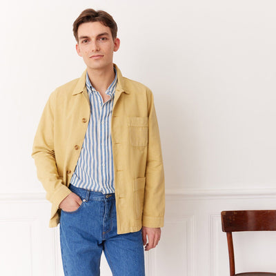 Along this journey that looks like a holiday highway, you will find both familiar clothes and surprising new items. If you know our taste for interpreting timeless classics, you will quickly see that the collection presented is a grand cru classé. If you listen carefully (and open your eyes), you will indeed perceive a few notes of extravaganza in the middle of the ode to simplicity that we have been lovingly playing since 2012. True to our guiding principles, these are not eccentricities that we offer you, but rather a bold conception of the great spring and summer icons. In addition to the sacred monsters of the classic men's wardrobe, you will therefore find twisted basics intended to bring a hint of the unexpected to your outfits for the coming weeks. A shirt? Yes, but a little straighter than usual to promote ease and breathability. Pants ? Sure, but with one or two pleats to combine delicacy and lightness. A jacket? Of course, but deconstructed to achieve the Italian sprezzatura , another name for controlled nonchalance. A suit? Obviously, but in a linen version barely heavier than nothing. A T-shirt, a cap , a sweatshirt ? Faultless, but marked with an “Honest everyday” embroidery that sets the tone. Between classicism and singularity, this is more or less the fauna you will encounter during your dive into the heart of our spring-summer collection.