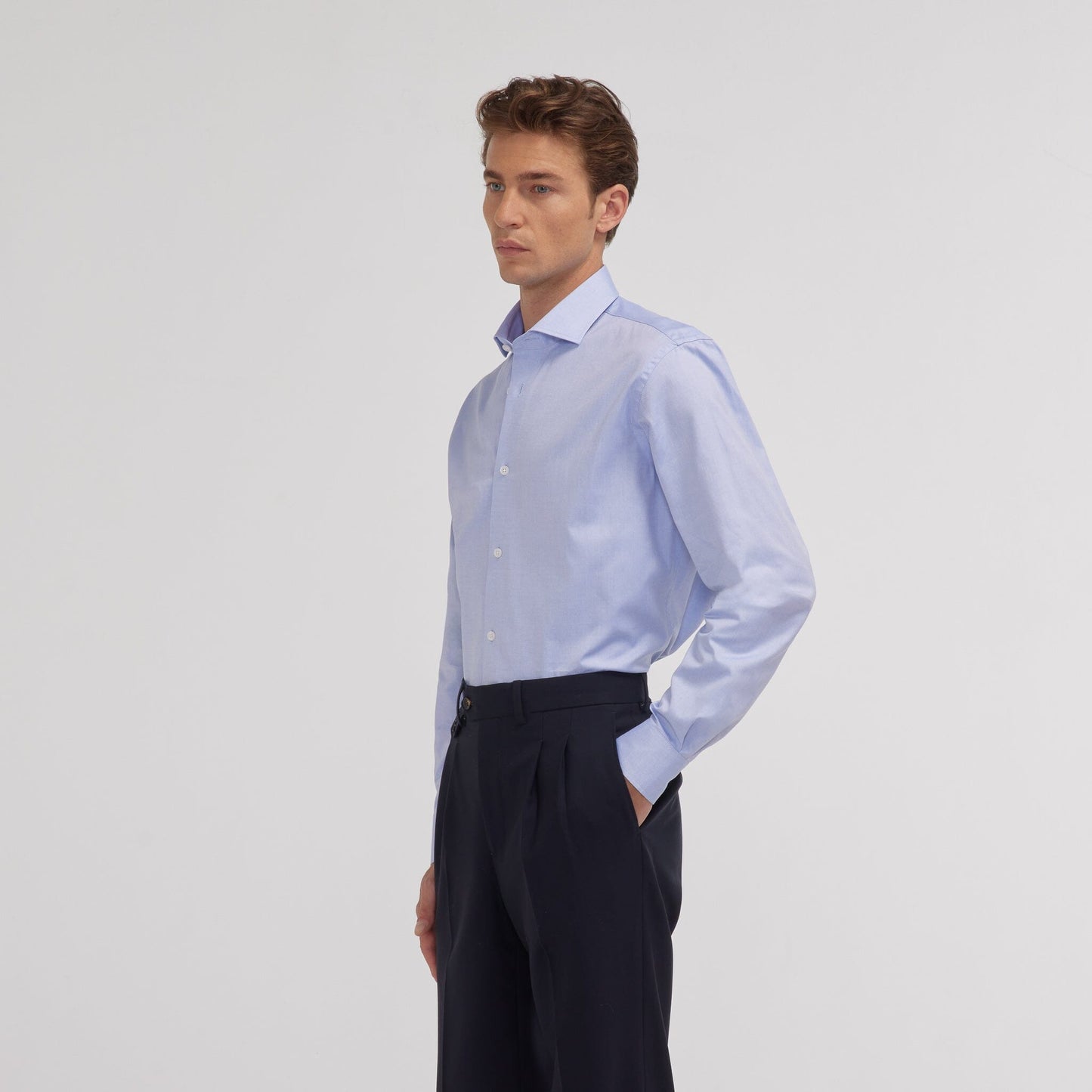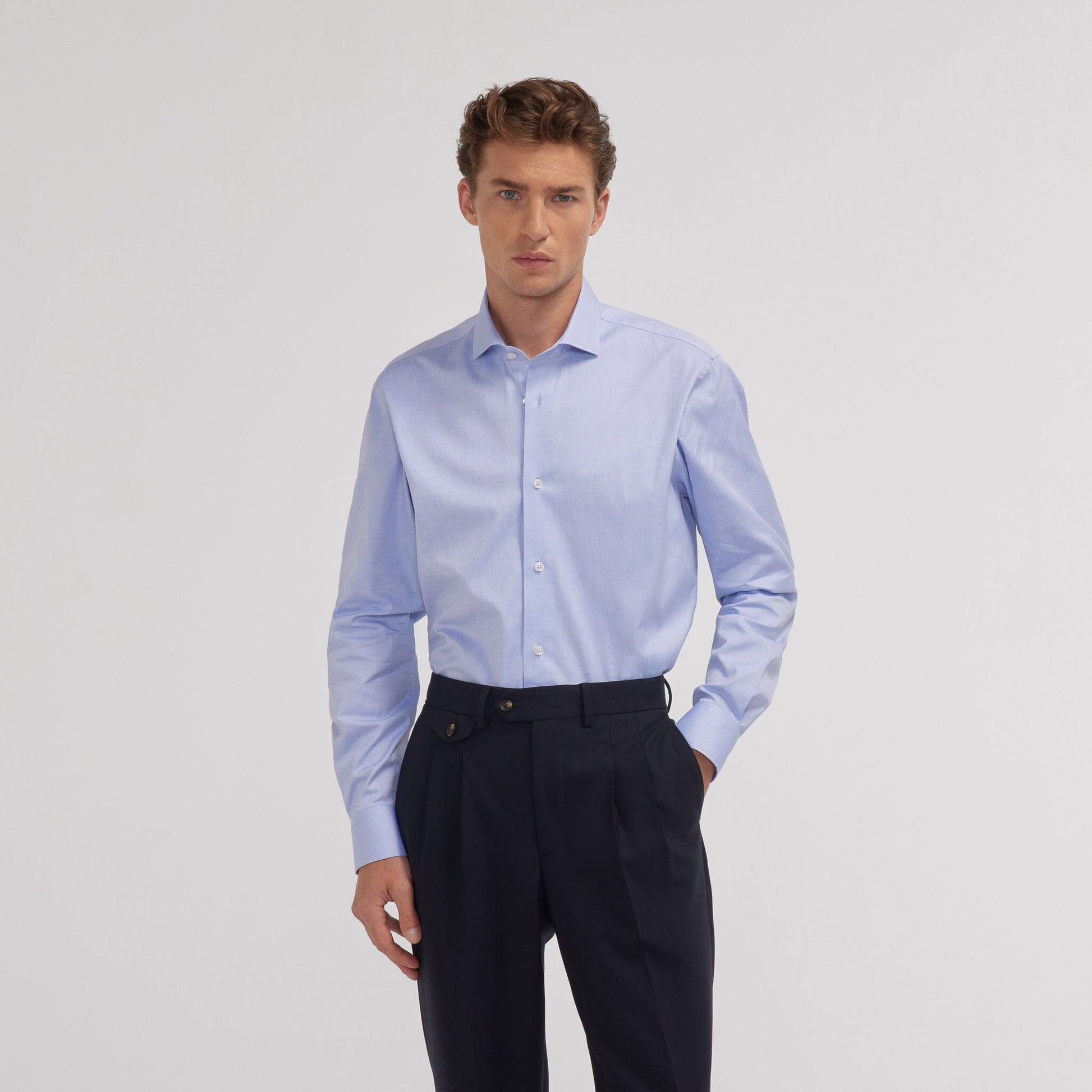 Its classic cut flatters the silhouette, while our signature collar, designed to suit everyone, with or without a tie, adds a touch of discreet refinement.