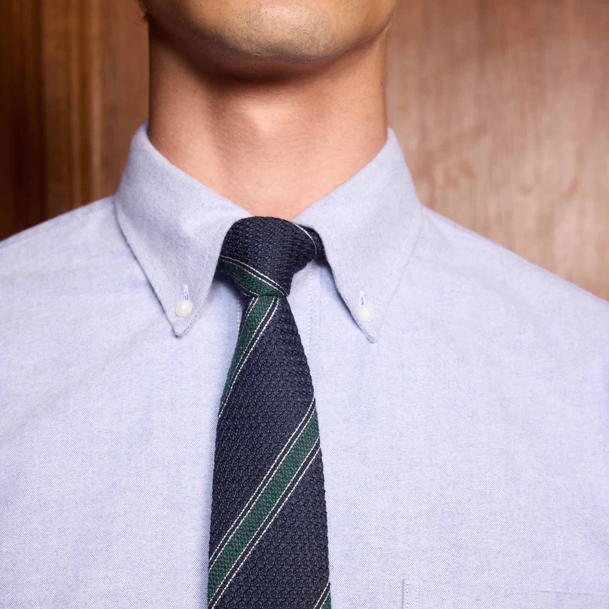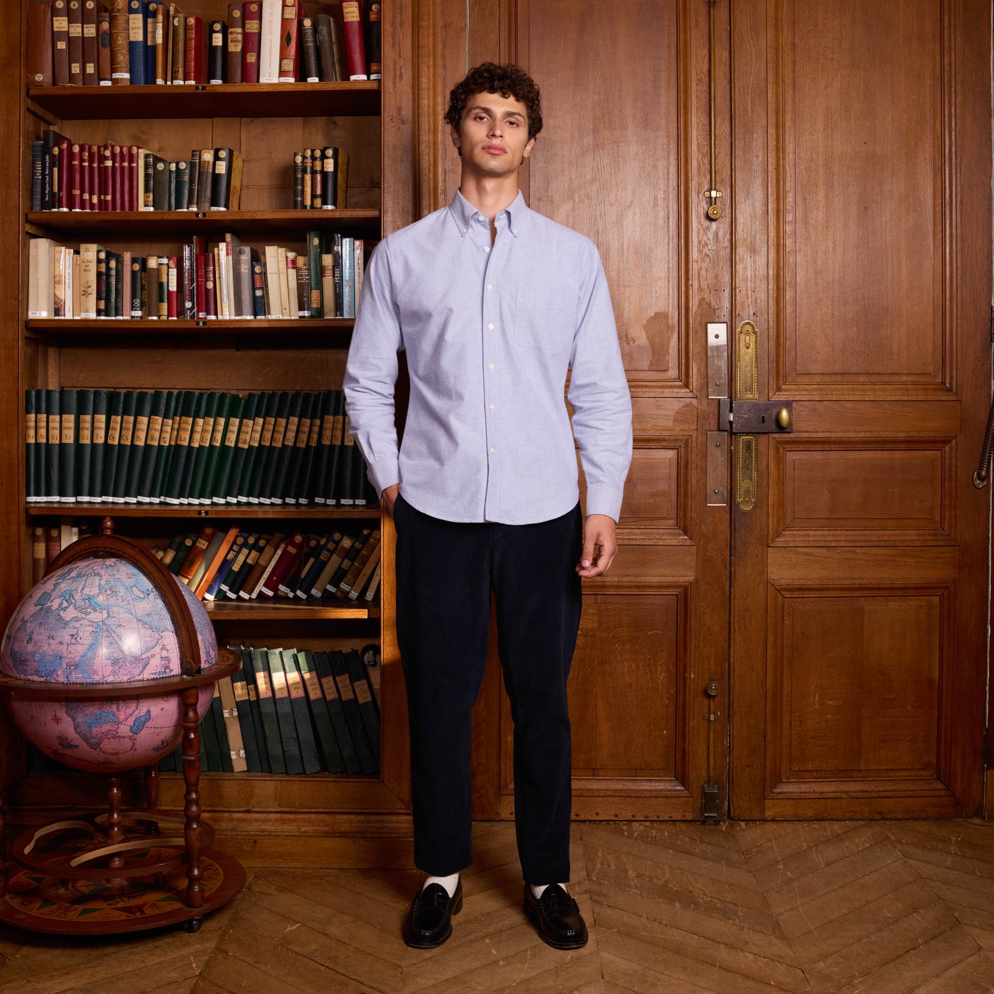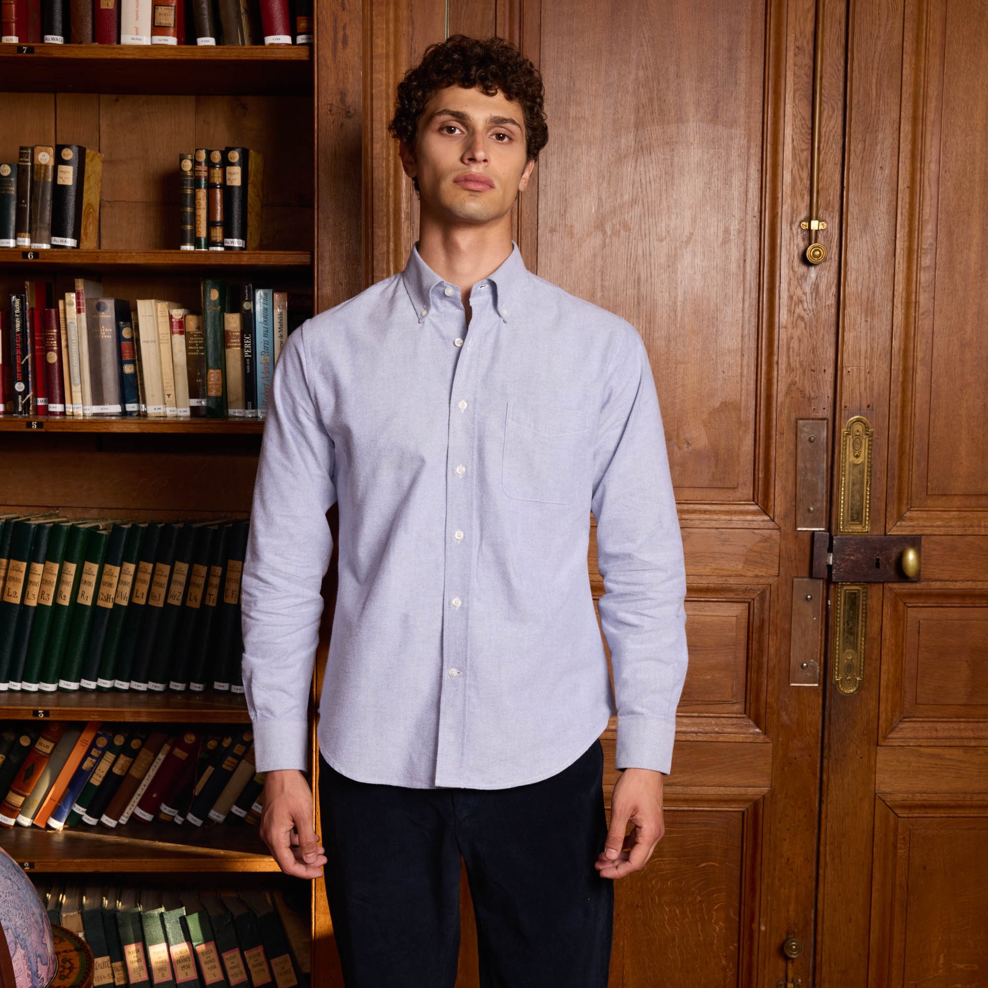 In blue and with its buttoned collar, here is a shirt that goes with everything. The oxford weave brings relief to the shirt while the flannel brings softness.