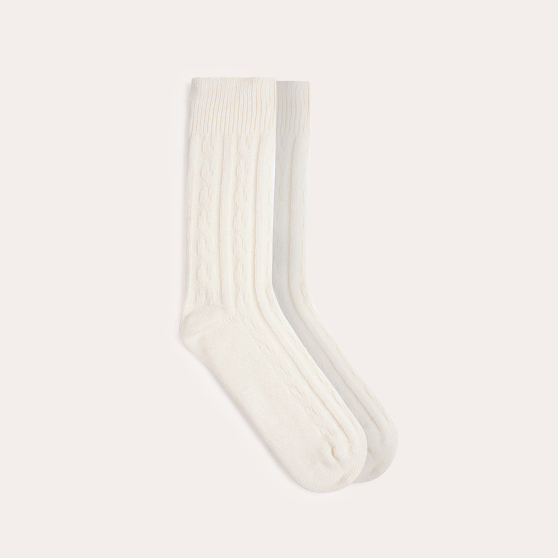 These wool and cashmere socks are perfect for keeping your feet warm this season. Their cable-knit pattern, inspired by our sweaters, will add a subtle touch of elegance to your outfits.
