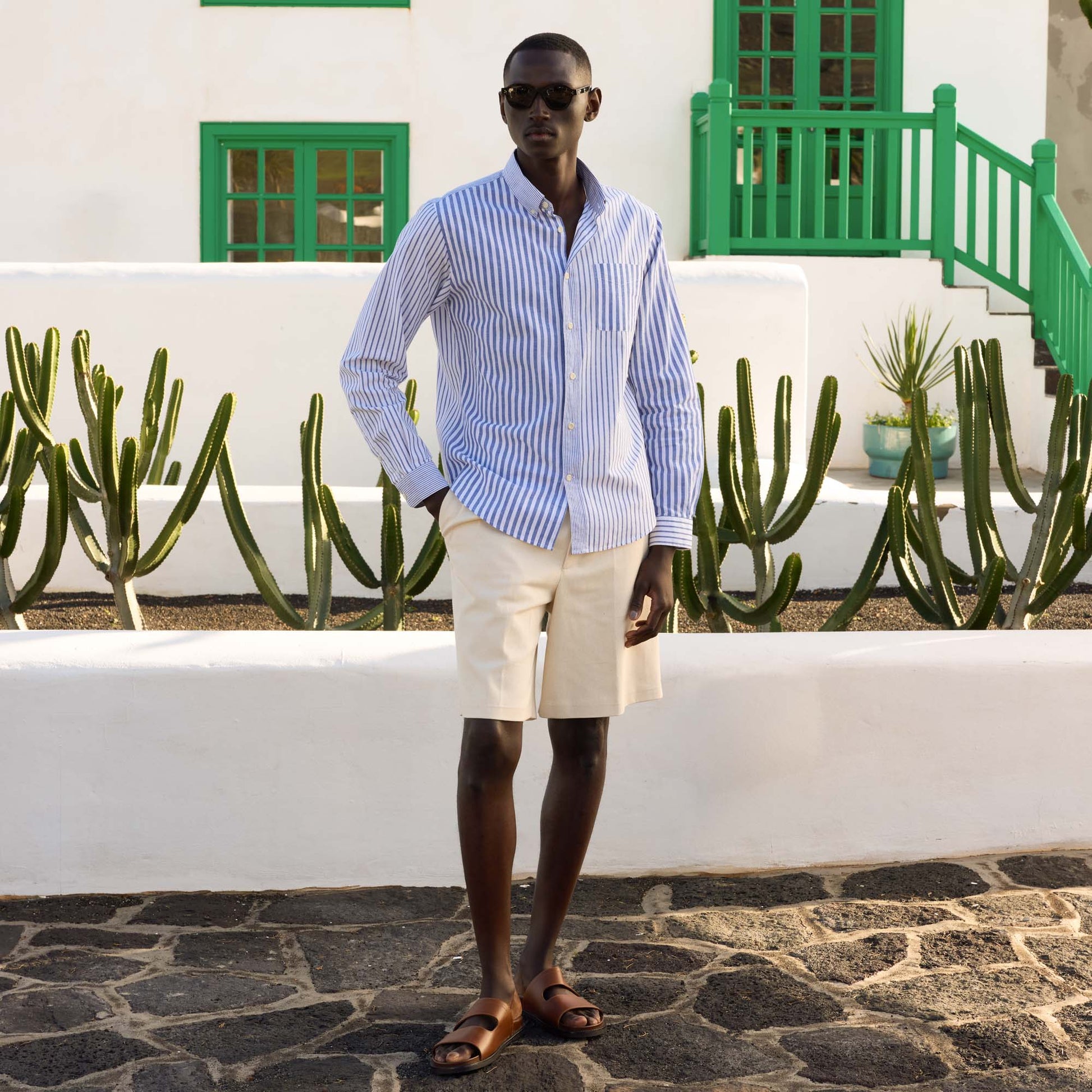 Blue striped cotton and linen shirt