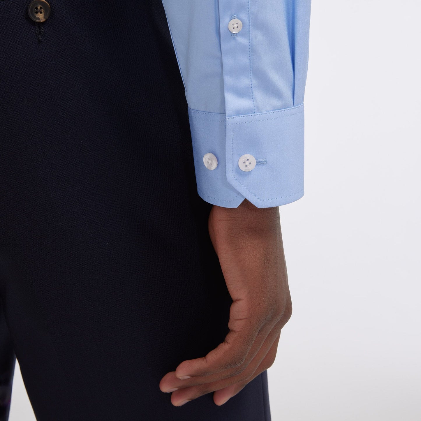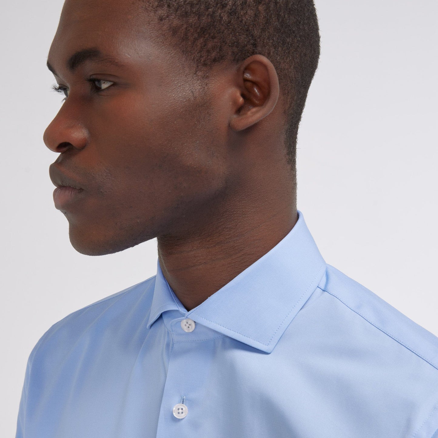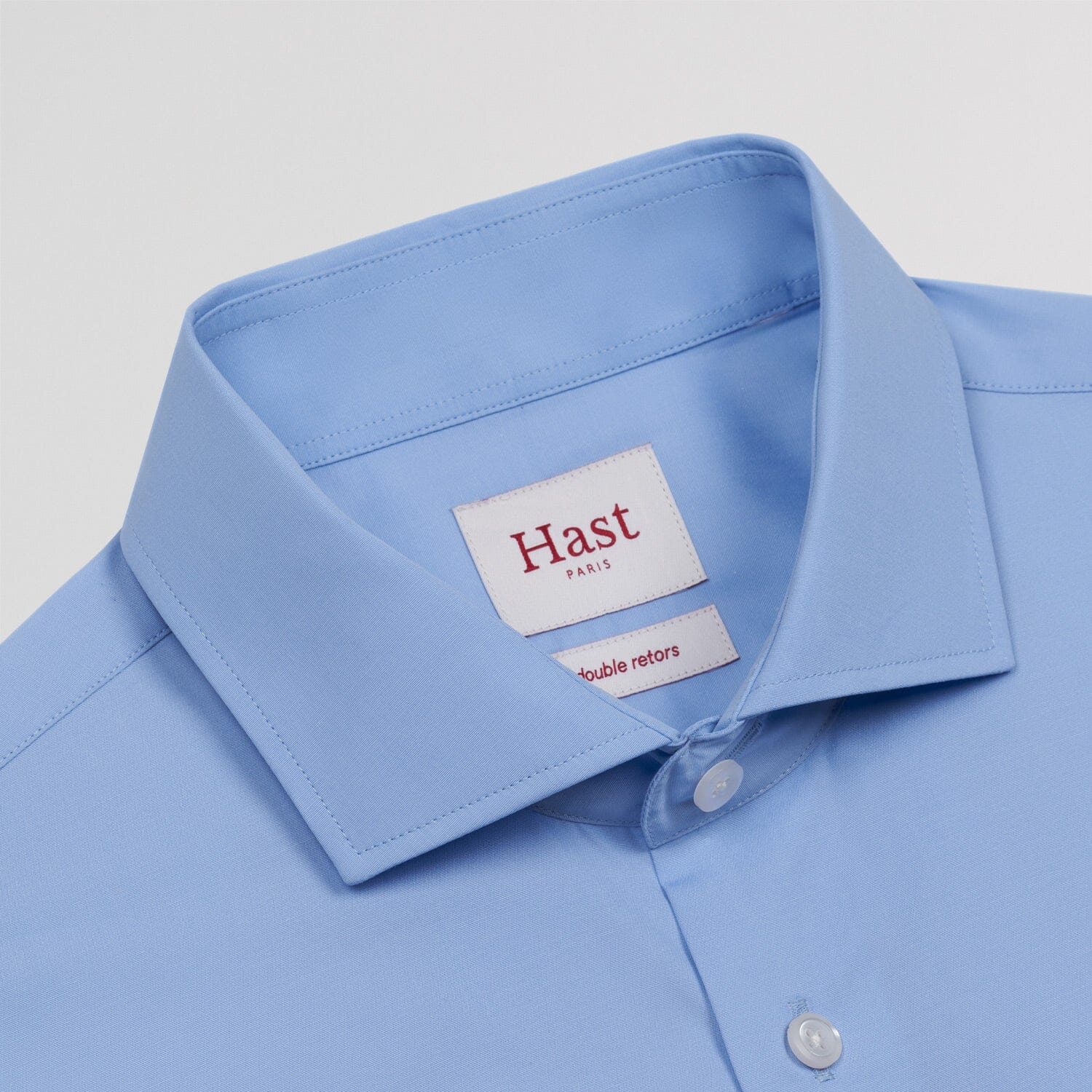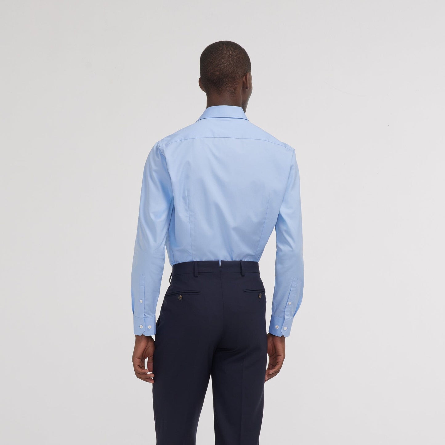 This 100% double-ply cotton poplin shirt will enhance any outfit. Blue is a timeless color, flattering to all skin tones, and lasting through the seasons without ever losing its elegance.
