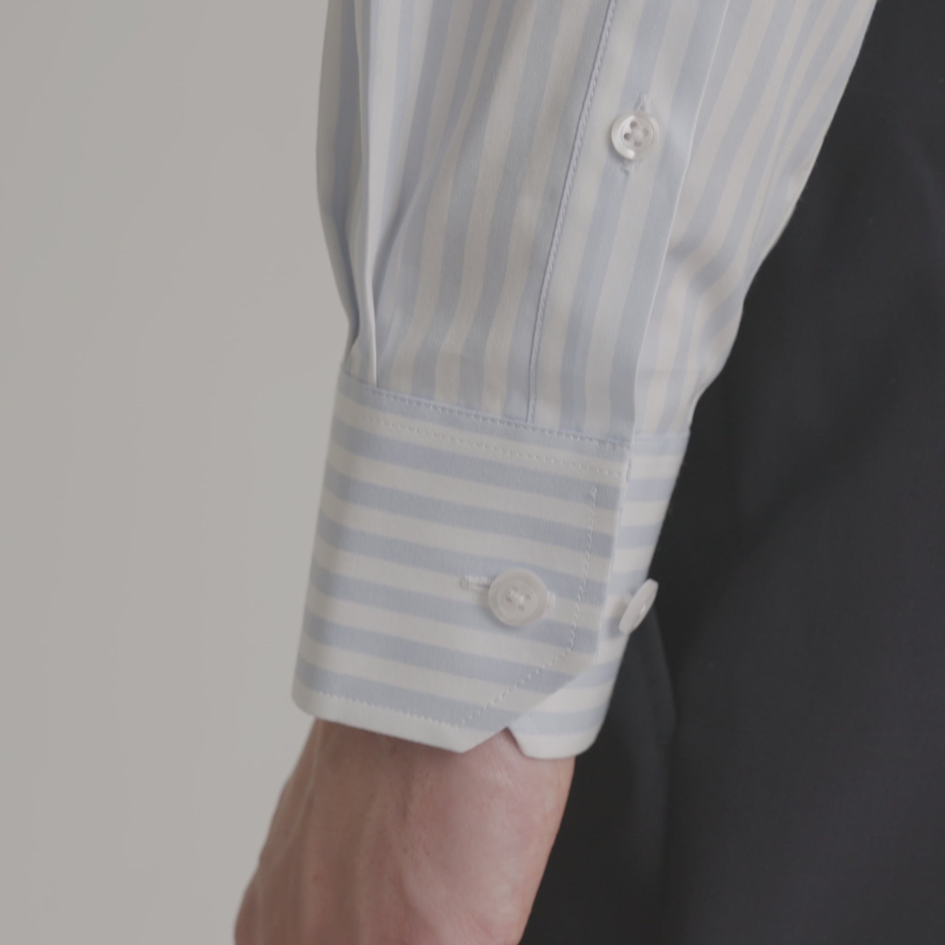 Fitted shirt in double-twisted poplin with sky blue and white stripes