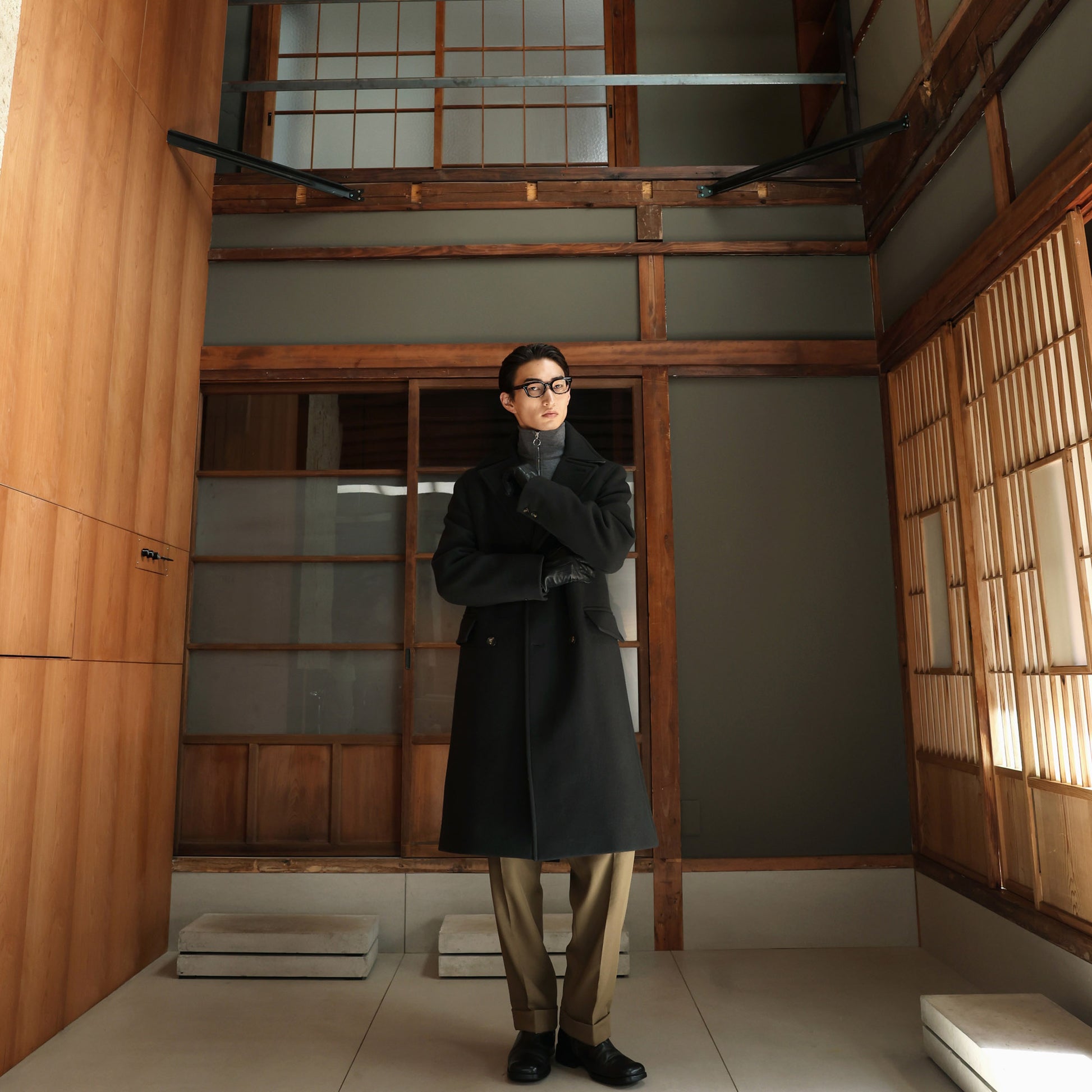 Born from the third phase of the Hast and Nona Source collaboration— the LVMH-backed platform dedicated to repurposing surplus materials from the most prestigious luxury brands —this long, double-breasted coat showcases the excellence of double-faced Italian wool. A generous fabric with contrasting properties, it combines robustness with a fluid drape. Fastened with four buttons and distinguished by its contrasting undercollar, the garment offers a timeless geometry revisited with subtle contemporary flair. A creation destined to become a lasting staple in a discerning wardrobe.