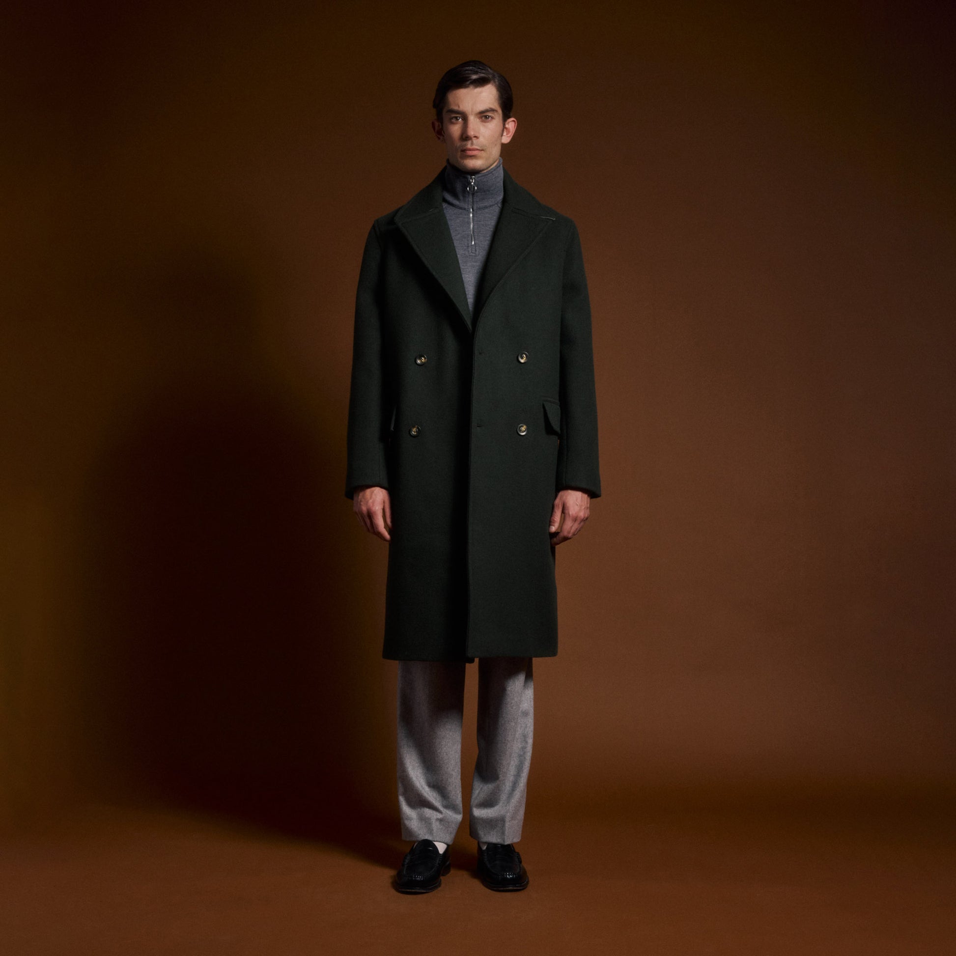 Double-breasted coat in green wool