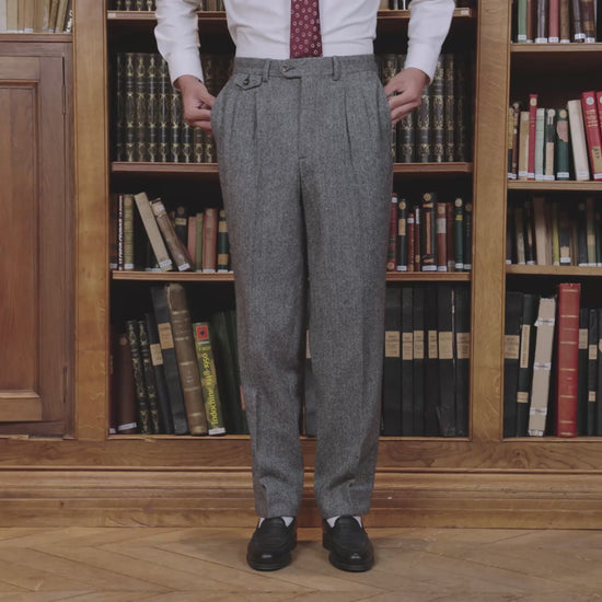 These British-style trousers are crafted from thick wool for a unique fit. Fully lined and featuring a straight cut, they're incredibly comfortable and will keep you warm this winter. With their stunning herringbone pattern, they'll add depth to your outfits. They can be worn alone or as a suit with a jacket in the same fabric.