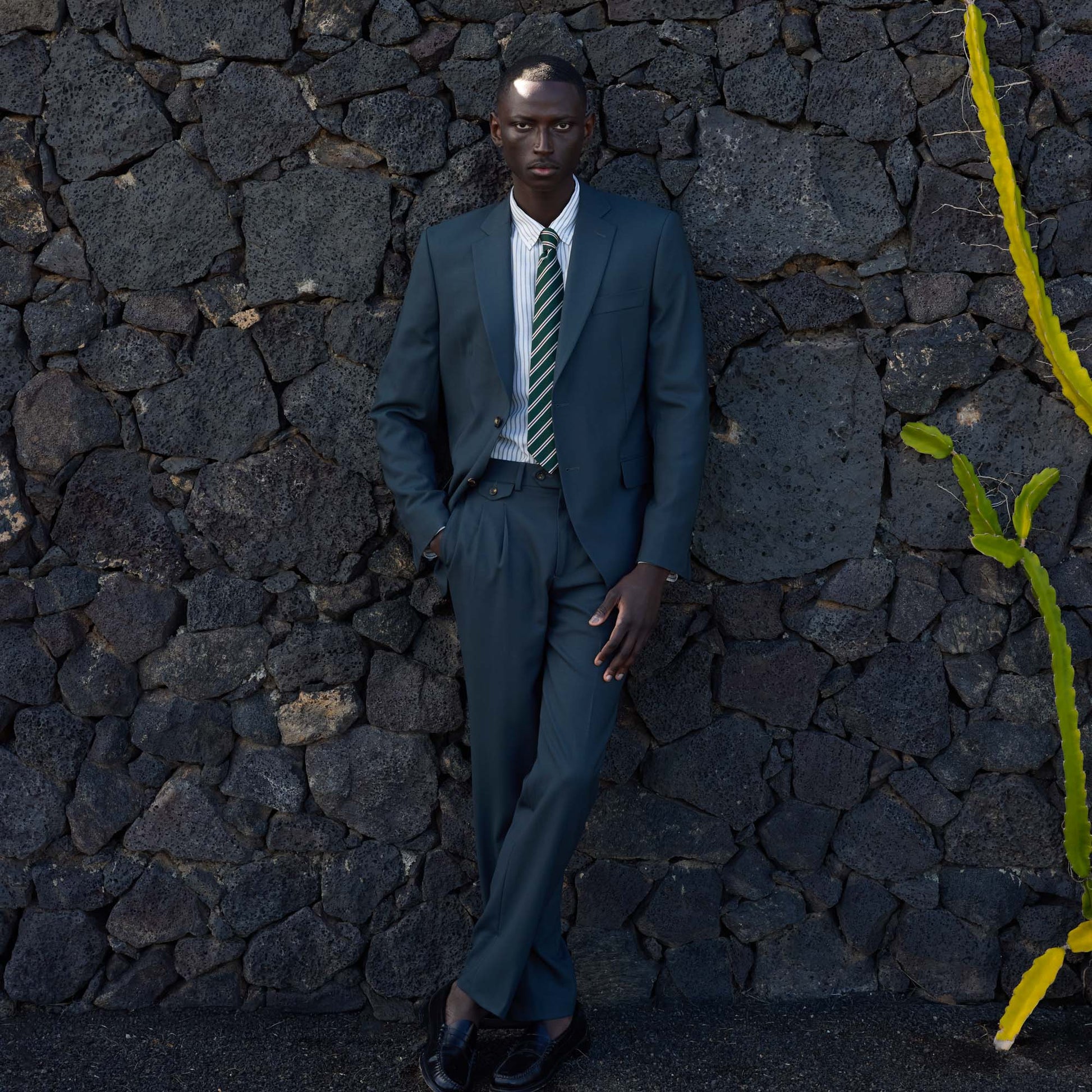 Dark green Fresco wool pleated trousers with a straight cut. A structured piece, designed to be worn slightly high-waisted.