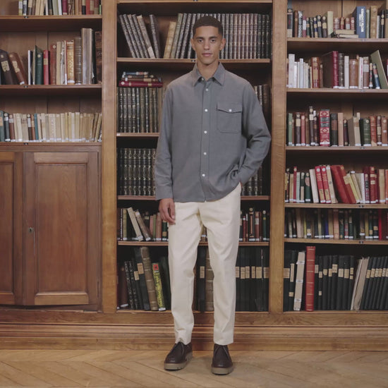 Originally intended for the workshops of a French luxury house, this fabric is now living a second life with Hast, thanks to Nona Source, a platform supported by LVMH. It gives this overshirt a very beautiful texture. In gray, it can be combined with any color.
