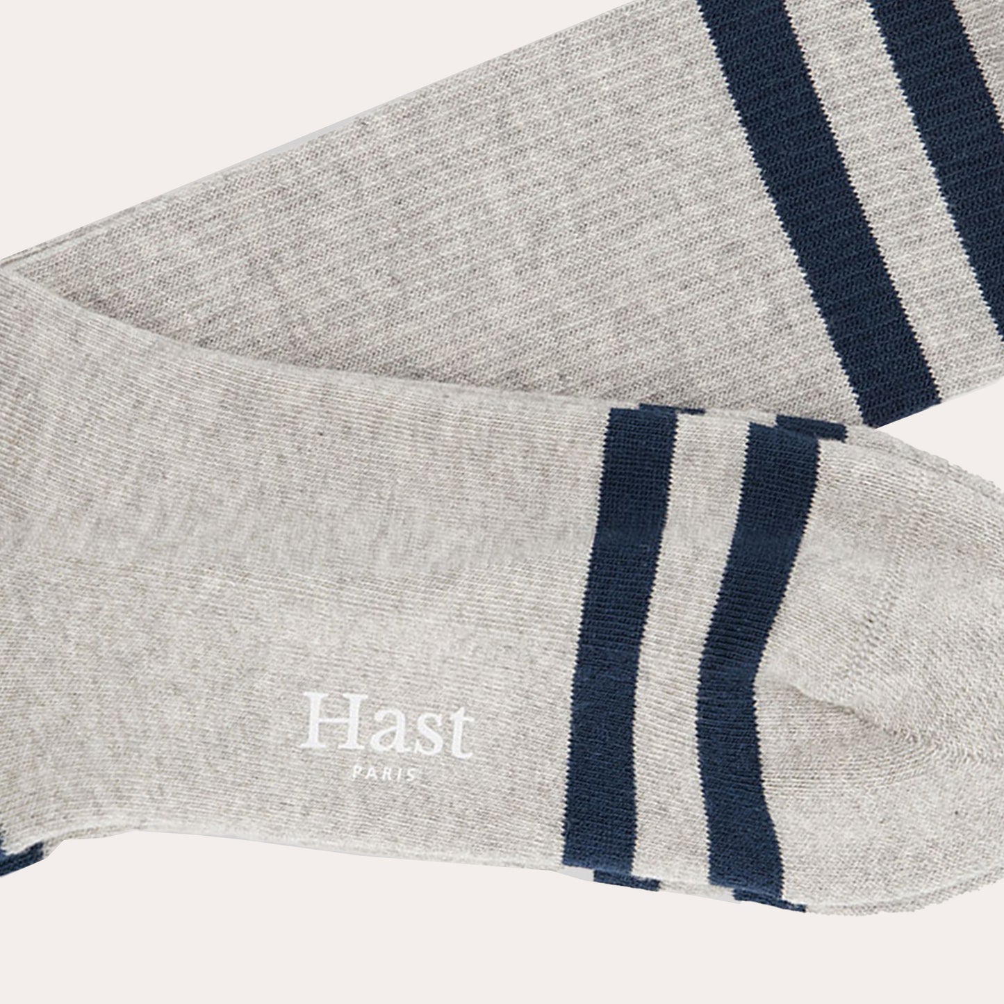 Nos chaussettes rayées en coton amènent un esprit Ivy League à vos tenues. Molletonnées, elle sont parfaites avec une paire de sneakers comme avec des mocassins.