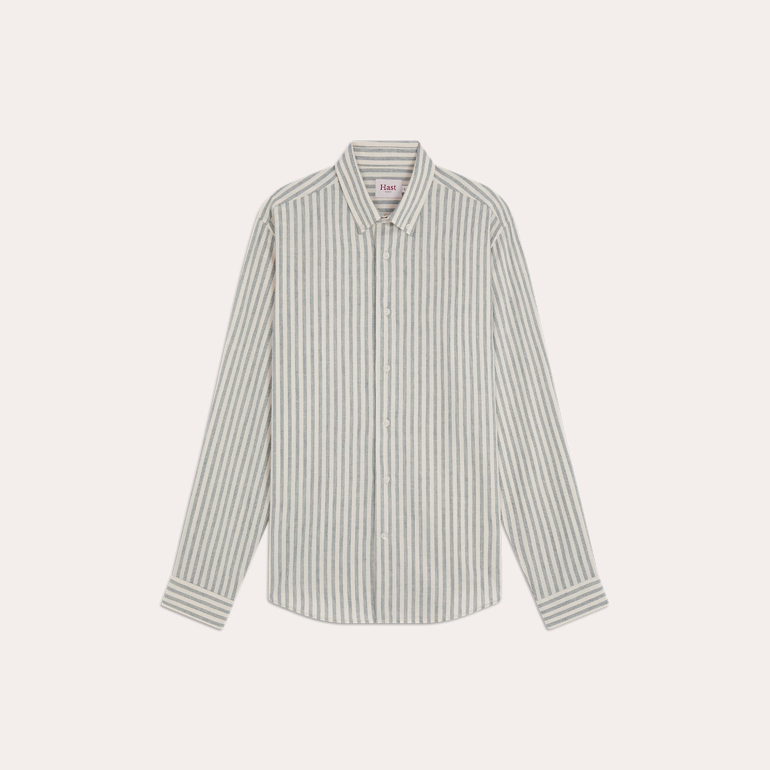 Chemise en flanelle de coton et lin écrue à rayures vertes