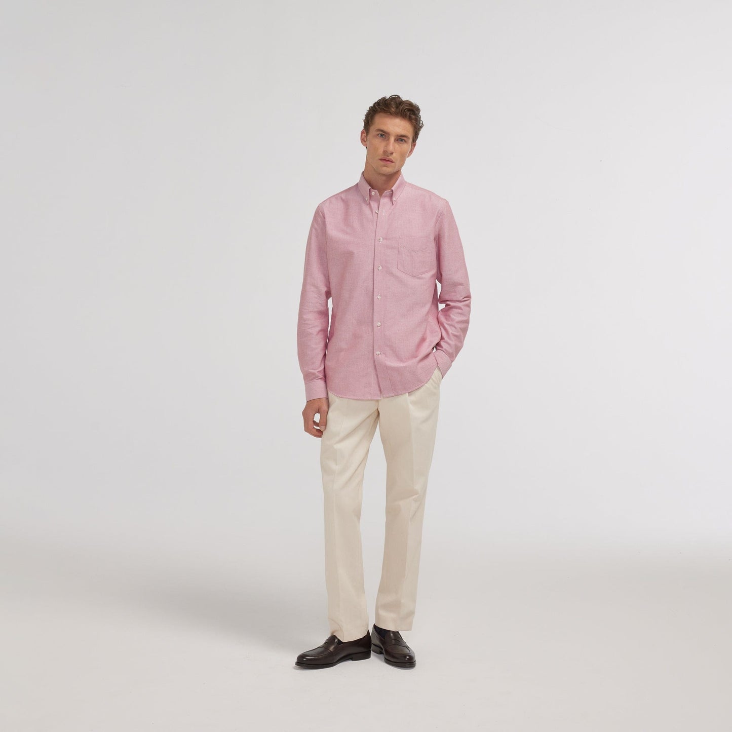 La chemise en oxford à col boutonné est un classique du vestiaire masculin. C'est la chemise la plus facile à associer avec vos différents vêtements. L'oxford est un tissu très résistant avec une belle texture. En bordeaux, pour apporter de la couleur à votre tenue.
