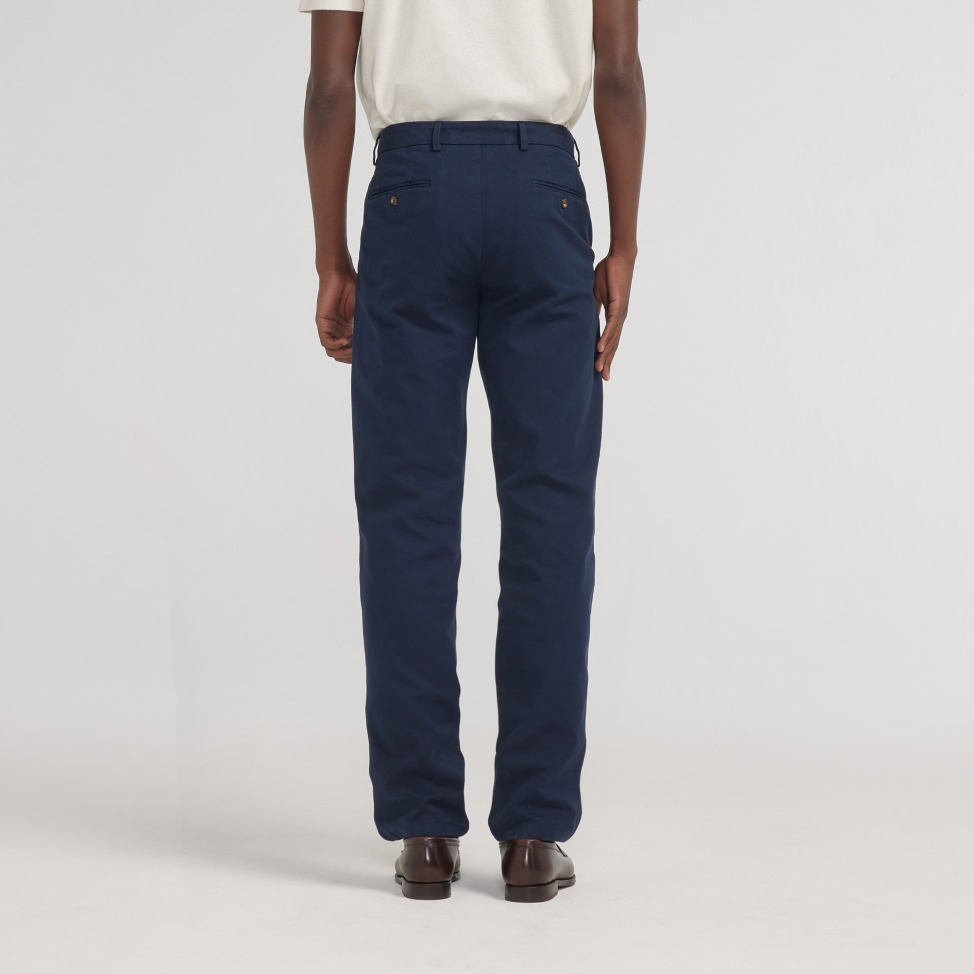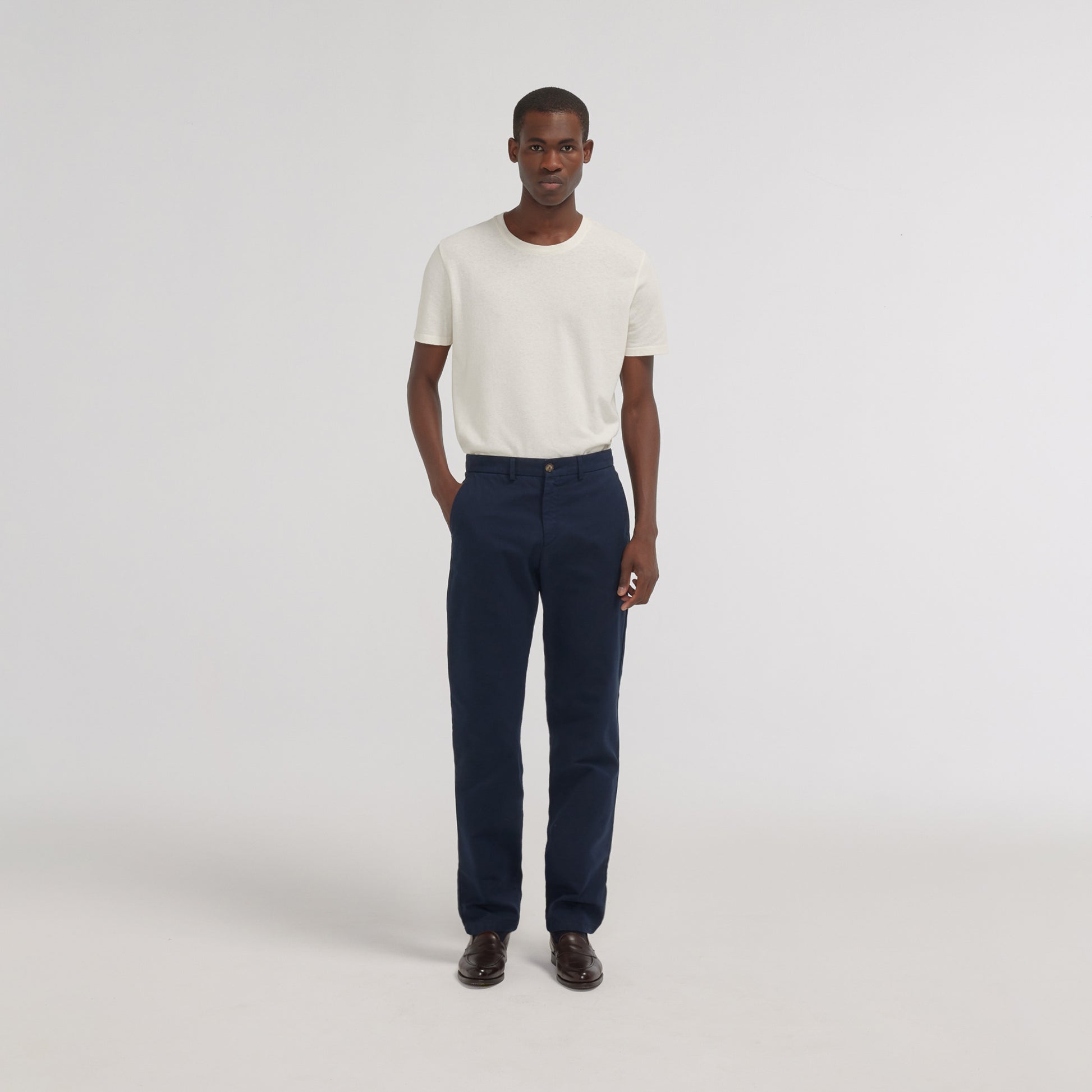 Essentiel de la garde-robe masculine, le chino s’adapte à toutes les occasions et styles, et ce modèle bleu marine ne fait pas exception à la règle.