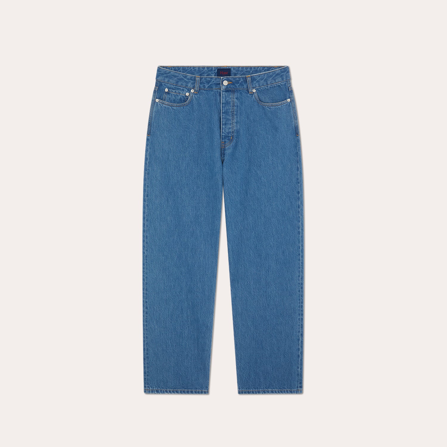 Jean droit en toile italienne Candiani 13 oz, 100 % coton rigide, confectionné au Portugal. Sa coupe droite et moderne met en valeur la silhouette, tandis que sa couleur indigo et sa trame rouge lui confèrent un look authentique et polyvalent. Le denim, tissé sur métiers à navette traditionnels, est conçu pour se patiner naturellement, résister au temps et traverser les saisons avec style. Les finitions incluent des boutons personnalisés et un effet subtil “stone washed” pour un hommage élégant aux denims seventies, durable et authentique.