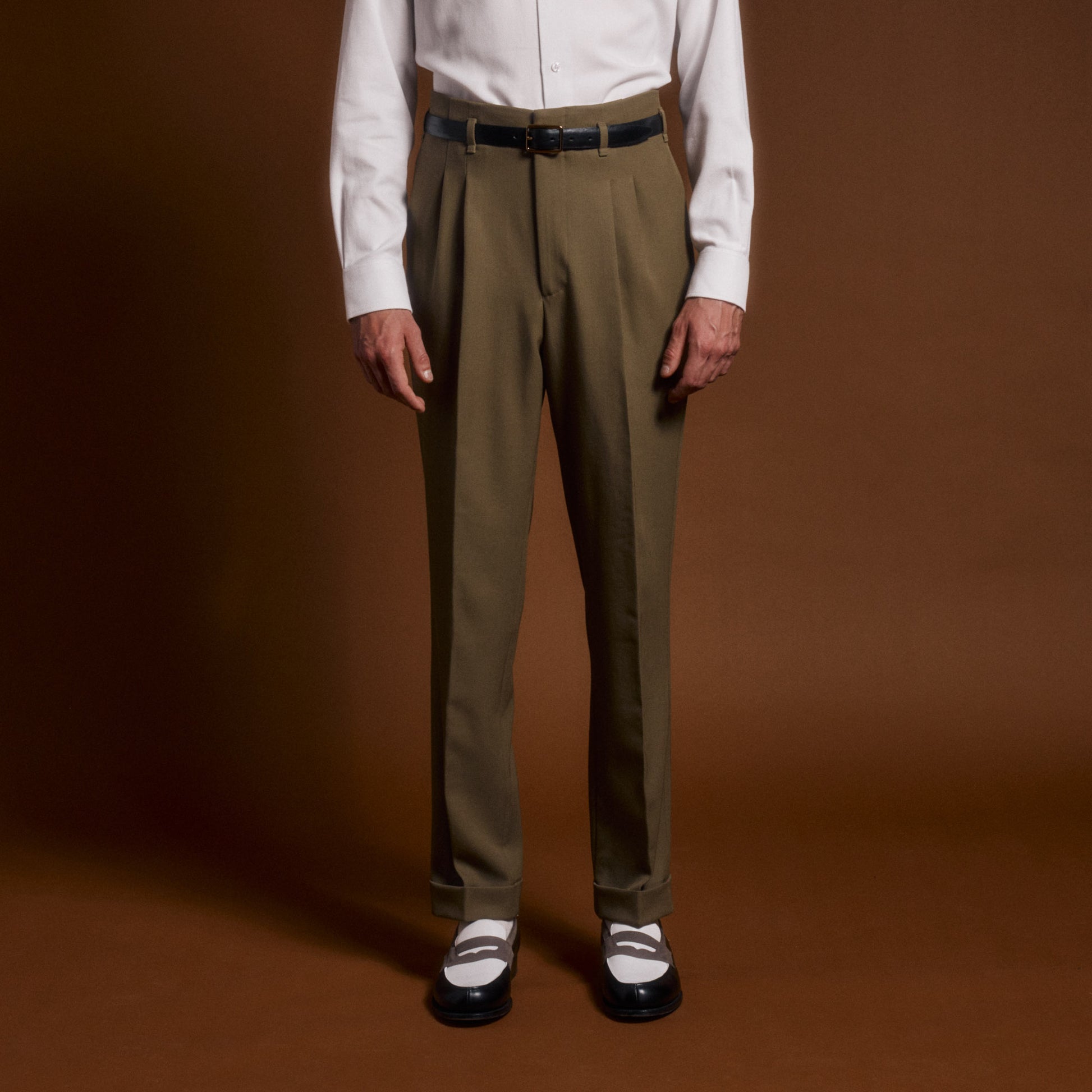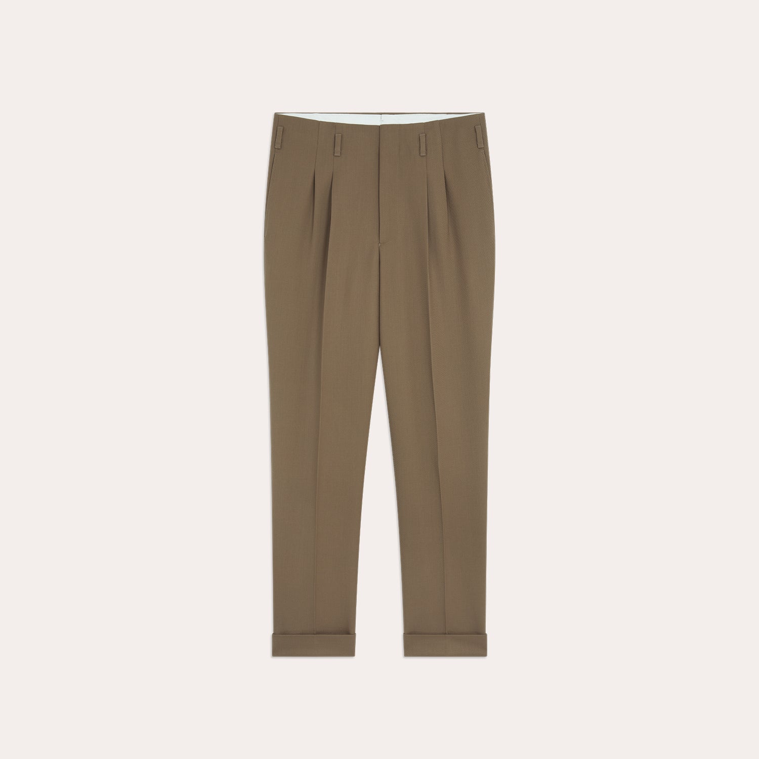 Pantalon drop loop brun à pinces en laine vierge