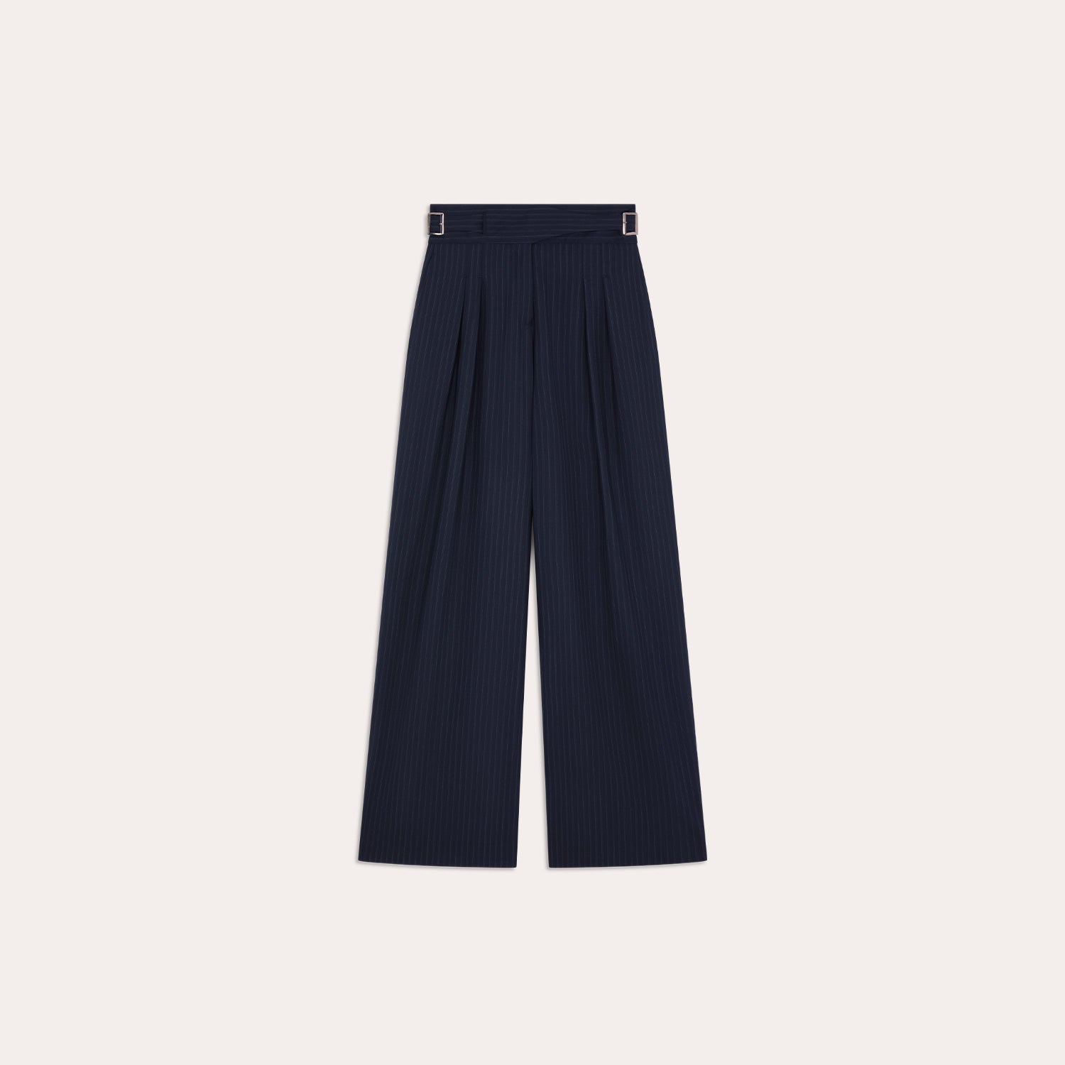 Pantalon Gurkha à plis en laine rayée marine