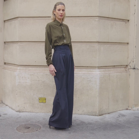 Pièce manifeste de la collection, ce pantalon à la ceinture Gurkha incarne la working girl selon Inès : sûre d’elle, moderne, et affranchie des conventions. Sa taille haute structurée et sa coupe large dessinent une silhouette forte, élégante, presque architecturale.