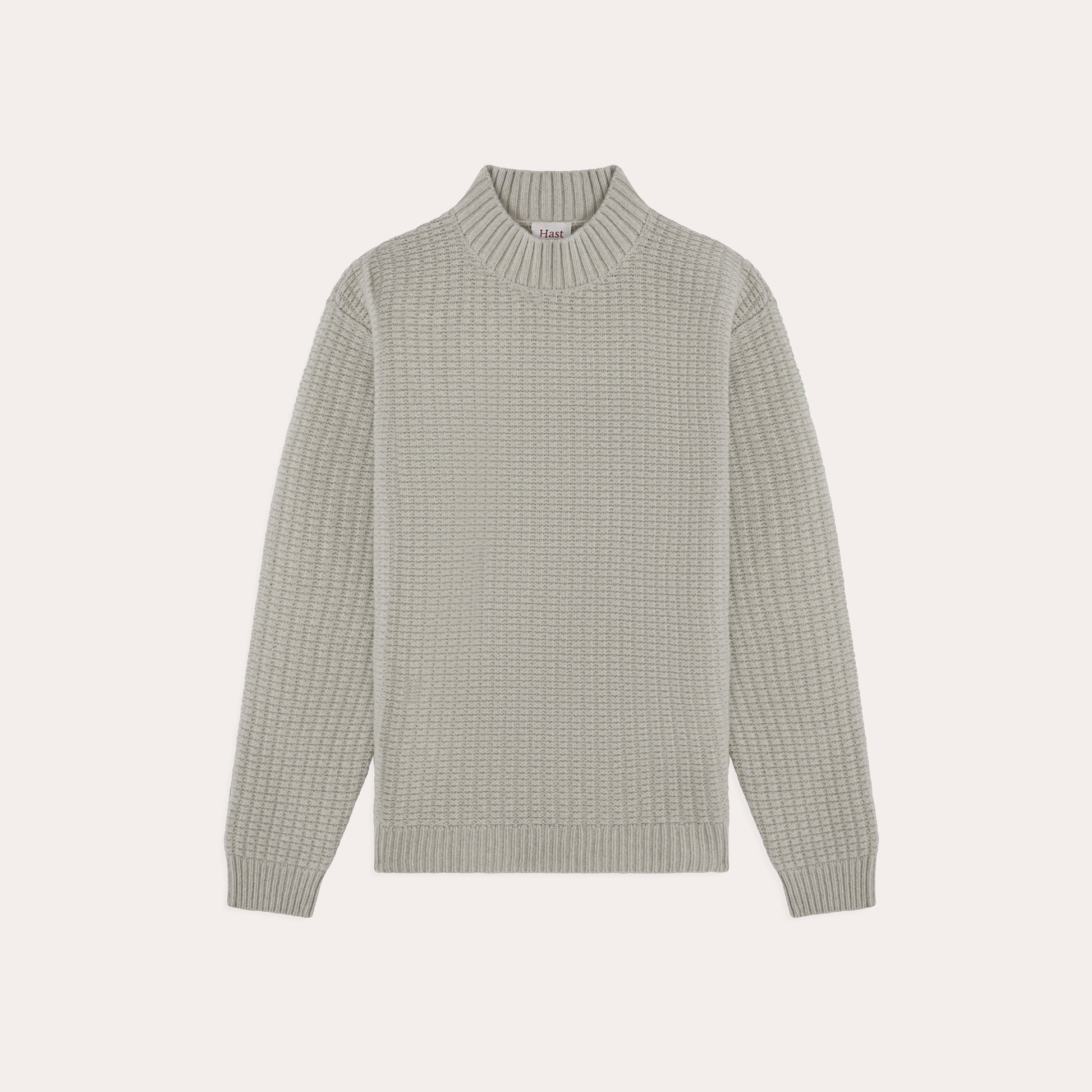 Nouveauté de la saison, ce pull à col cheminée a été tricoté en Italie avec beaucoup d'allure et de relief, grâce à son tricotage structuré. C'est un pull épais en 100% laine mérinos qui sera un allié de poids contre le froid.